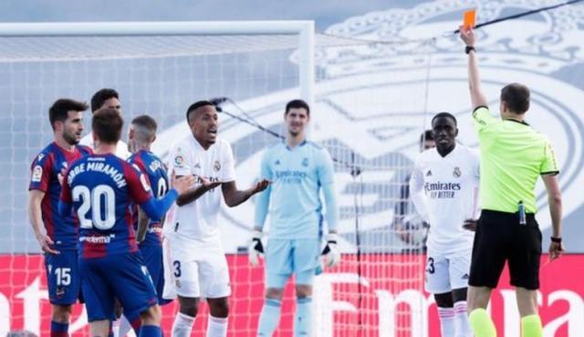 开场第8分钟,莱万特前锋塞尔吉奥·莱昂接到本方后场长传,拔腿狂奔直奔禁区。皇马3人猛追,距离莱昂最近的米利唐贴身防守时犯规,将对方放倒在禁区外。当值裁判梅迪埃·希门尼斯先出示黄牌,后经视频裁判确认,改成了红牌。这张红牌连同其他几次判罚成为赛后议论热点。“马卡”电台客座裁判安杜哈尔认为:“米利唐犯规时,瓦拉内有可能干预莱昂持球。因此应该是黄牌。”言下之意,在瓦拉内与莱昂位置持平时,从背后犯规的米利唐并不是“最后的防守者”。