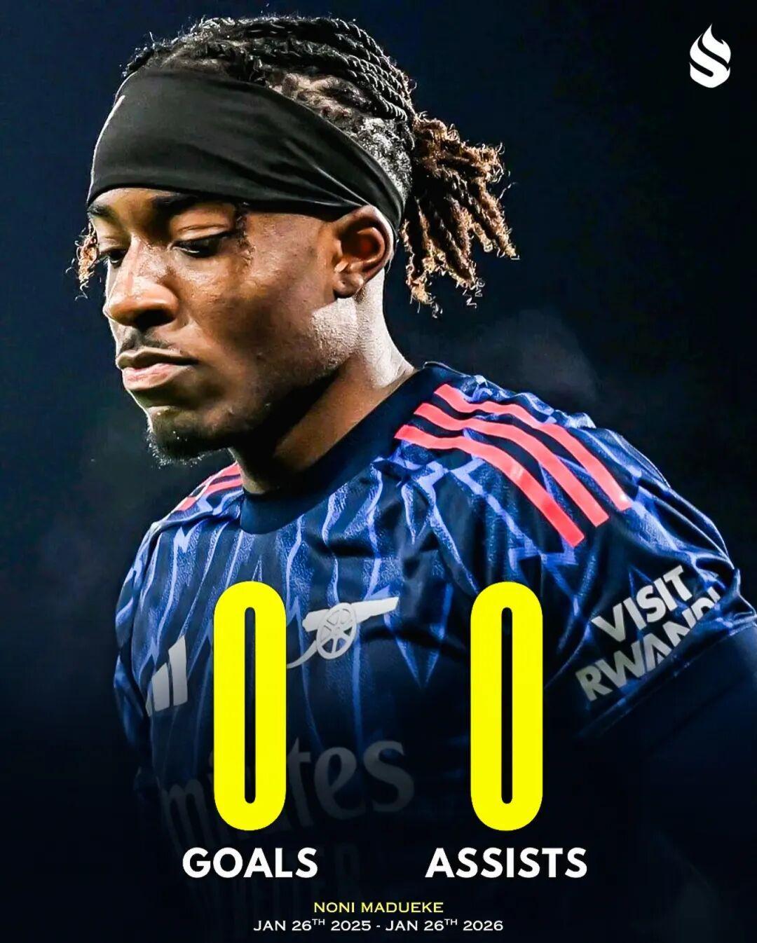 对阵红魔的比赛标志着他连续25场比赛未能进球,而在加盟阿森纳之后,马杜埃凯14次英超出场0球0助攻,毫无作为。这个数据对于一名中场球员来说都是令人担忧的,更不用说一名被引进来为争冠球队增添火力的边锋了。