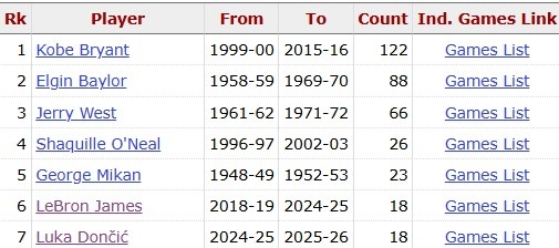 据统计,这是东契奇湖人生涯第18次40+,追平詹姆斯,并列队史第6多。