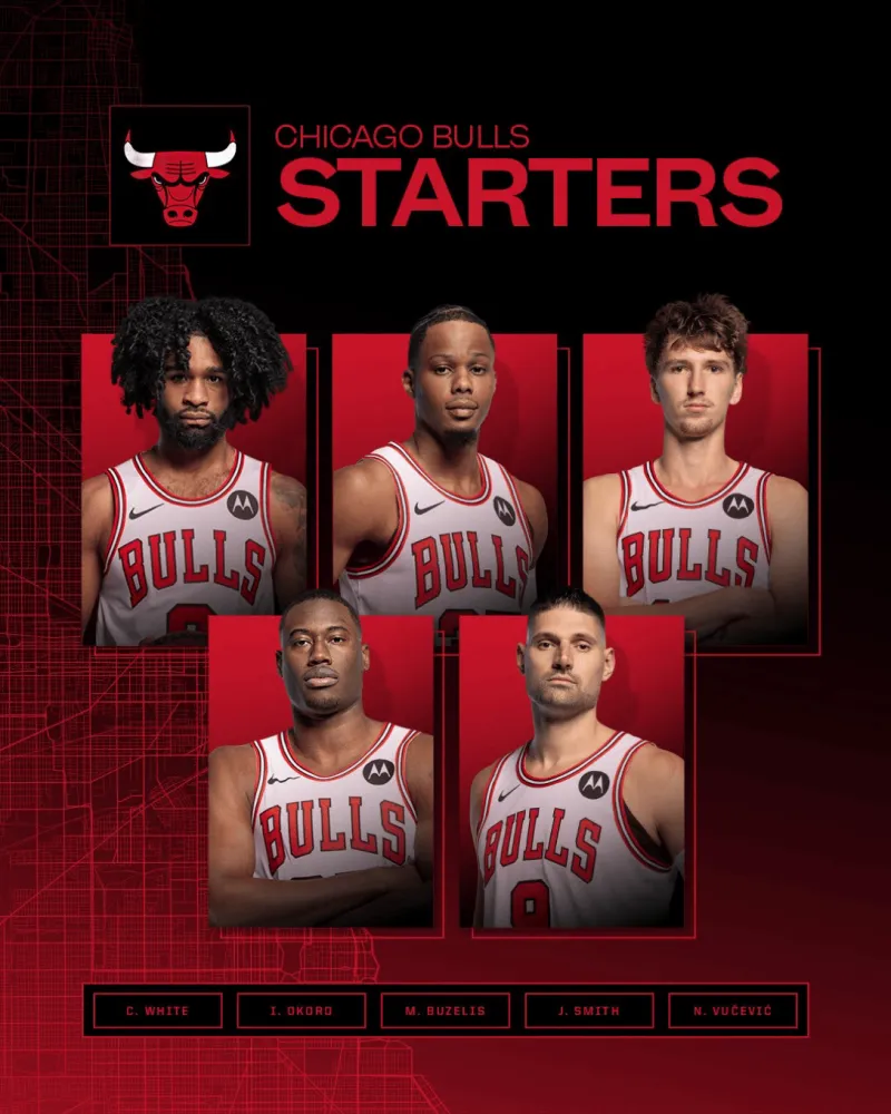 公牛首发:科比-怀特、奥科罗、布泽利斯、史密斯、武切维奇